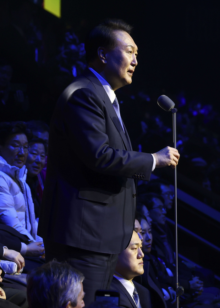 개회사 직후 윤석열 대통령은 자리에서 일어나 개회 선언을 했다. 윤 대통령은 힘찬 목소리로 “제 4회 강원 동계청소년올림픽 대회의 개회를 선언합니다”라고 외쳤고 본격적인 개막식의 시작을 알렸다. et16@sportsseoul.com