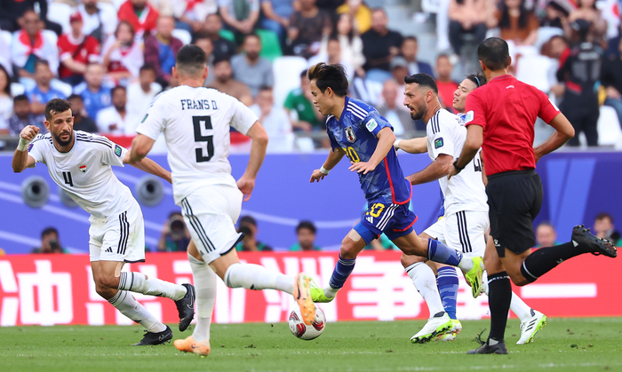 하지메 모리야스 감독이 이끄는 일본(FIFA 랭킹 17위)은 19일 오후 8시30분(한국시간) 카타르 도하의 에듀케이션 시티 스타디움에서 킥오프한 아시아축구연맹(AFC) 아시안컵 이라크(63위)와 조별리그 D조 2차전에서 1-2로 패하면서 이라크(승점 6)에 선두를 내주며 조 2위(승점 3)로 하락했다.