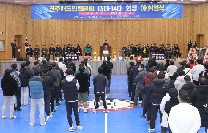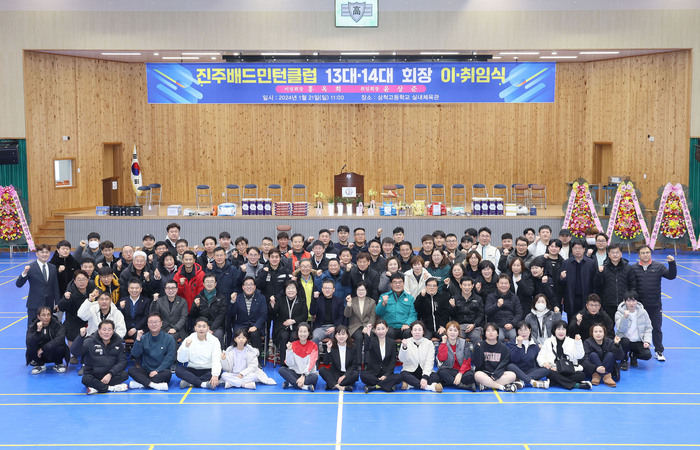 [스포츠서울ㅣ김기원기자] 21일 삼척고등학교 체육관에서 박상수 삼척시장, 정정순시의장 및 시의원, 강원특별자치도 심영곤도의원과 클럽회원 200 여명이 참석한 가운데 진주배드민턴클럽 회장 이취임식이 열려 13대 홍옥희 회장이 이임하고 14대 윤상준 회장이 취임했다.