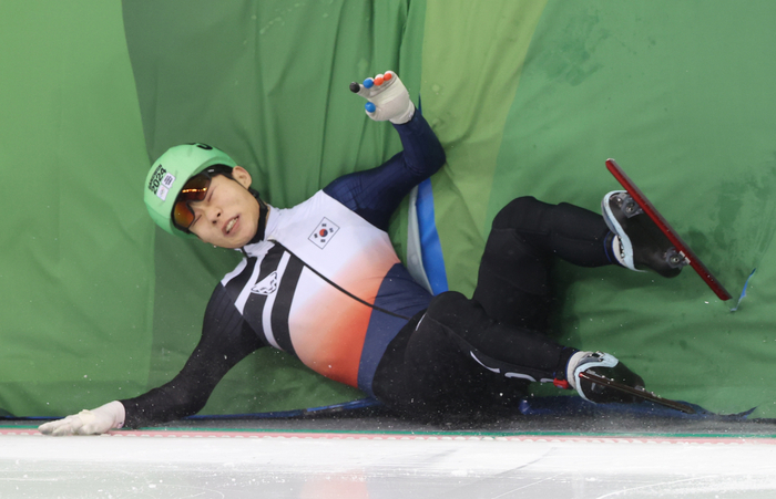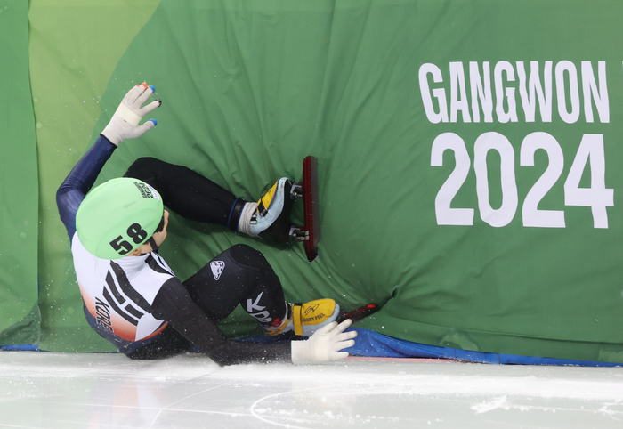 [스포츠서울 | 강릉=황혜정 기자] 남자 쇼트트랙 청소년 국가대표 주재희(18·한광고)가 1000m에서 넘어지며 아쉬움을 삼켰다.