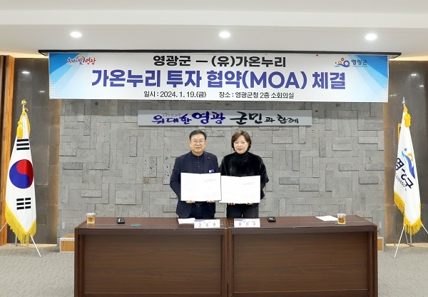 [스포츠서울/조광태기자] 전남 영광군(군수 강종만)은 지난 19일 과채주스 제조업체인 (유)가온누리(대표 윤은주)와 투자협약(MOA)을 체결했다.