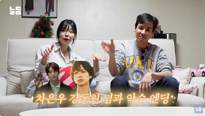 이다은은 “어떻게 된 거냐면 제가 임신 사실을 알리려고 집에 갔다. 남동생이랑 엄마가 있었는데 ‘나 사실 임신했다’고 하니 둘이 갑자기 엄청 놀라더라. 왜 그러냐고 했더니 한 달 전에 남동생이 엄청 생생한 꿈을 꿨다고 했다. 제 동생 양 옆으로 차은우님하고 강동원님이 앉아 있었다더라. 그 앞에서 대통령님이 무슨 말을 하셨다고. 차은우, 저희 동생, 강동원 이렇게 셋이서 이야기를 듣다가 마지막에 남동생이 차은우, 강동원과 악수를 하면서 꿈이 끝났다고 하더라”라고 전했다.