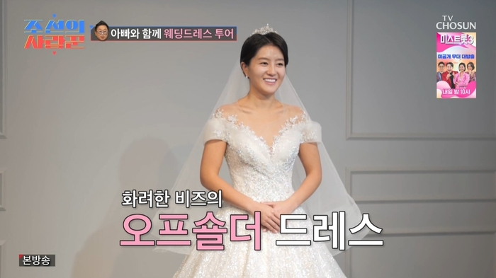 이날 이수민은 아버지와 예비신랑 앞에서 웨딩드레스를 피팅했다. 눈부시게 아름다운 딸의 모습에 이용식은 “예쁘다 우리 딸. 잘 자랐다”라고 말했다. 원혁은 눈물을 흘리며 사진으로 담았다.
