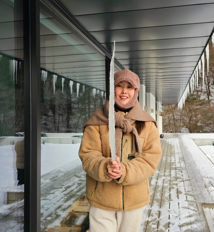 마치 ‘스타워즈’ 광선검을 연상케하는 1m 길이의 거대한 고드름을 들고 환하게 웃기도 했다.