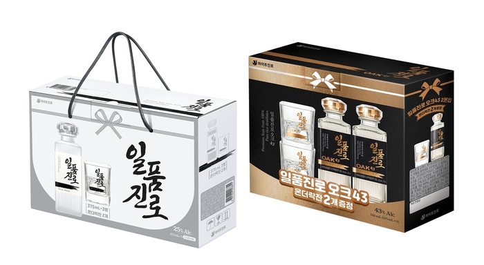 하이트진로 100년 증류주 노하우의 정수인 일품진로 선물세트는 375ml 3병과 온더락잔 2개로 구성했다. 하이트진로는 일품진로에 대해 깔끔하고 부드러운 목 넘김과 은은한 맛을 구현한 것이 특징이라고 설명했다.