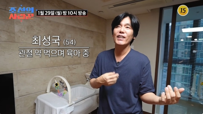 반백살이 넘은 최성국은 “사실 아이를 안고 뭐 하는 게 너무 힘들다. 피곤하다”며 퀭한 눈빛으로 “나 지금 관절약 먹고 있다”고 말해 웃음을 자아냈다.