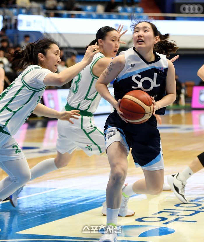 인천 신한은행 김지영이 24일 인천 도원체육관에서 열린 2023-2024 여자프로농구 부천 하나원큐와 경기에서 상대 수비를 따돌리고 슛을 시도하고 있다. 2024. 1. 24. 도원 | 최승섭기자 thunder@sportsseoul.com