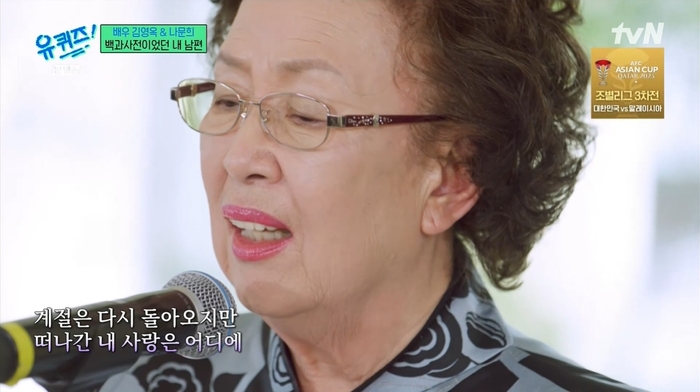나문희는 남편이 지난해 먼저 세상을 떠났다고 말했다. 그는 “백과사전이 없어서 허전하다. 날개를 단 것 같기도 하다”라며 그리운 마음을 토로했다.