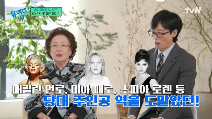나문희는 “소리로 하는 건 주인공을 많이 했다. 미아 패로, 마릴린 먼로, 소피아 로렌 (성우)를 했다. 더빙 작업을 많이 했다. 텔레비전 개국하면서 맨날 마담, 아니면 뚜쟁이 그런 역할을 많이 했다”라고 성우 시절을 떠올렸다.