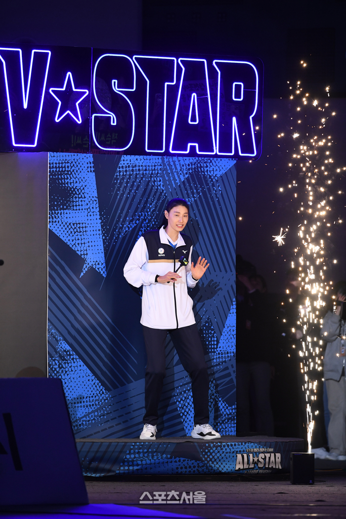김연경이 27일 인천 삼산월드체육관에서 열린 2023-2024 V리그 올스타전 에서 사회자의 소개를 받고 춤을 추며 입장하고 있다. 2024. 1. 27. 인천 | 박진업 기자 upandup@sportsseoul.com