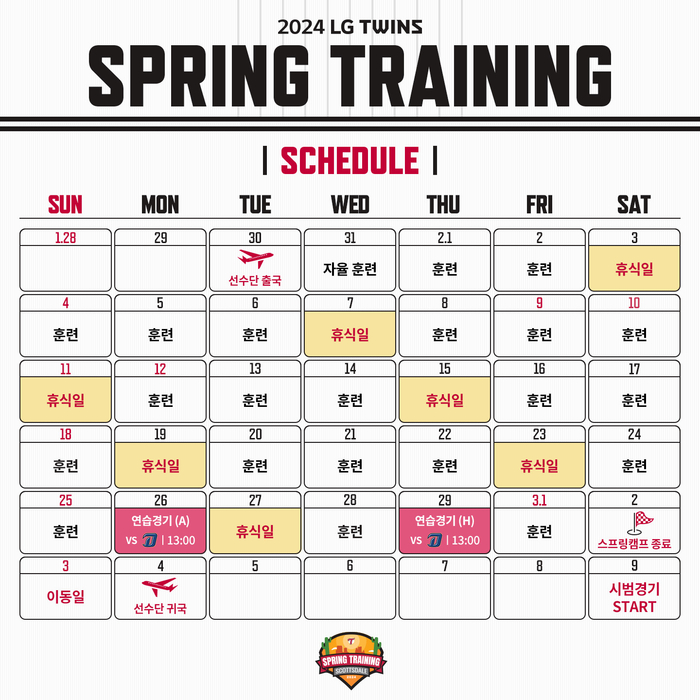 LG는 오는 30일 인천국제공항을 통해 미국 애리조나 스코츠데일로 떠난다. 3월4일까지 강도높은 훈련과 루틴 정립으로 ‘통합 2연패’를 준비한다.