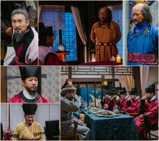 또 다른 스틸에는 거란의 사신들과 고려 신하들이 술상을 마주한 채 앉아 있는 모습이 담겨 있다. 전쟁을 치를 수 없는 상황에 직면한 거란은 전쟁 선포로 고려를 속인 뒤 강동 육주를 내어달라고 요구한다.