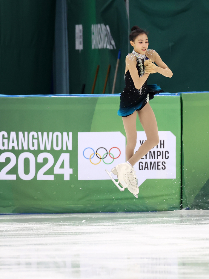 신지아와 김유성은 28일 강릉 아이스 아레나에서 열린 ‘2024 강원 동계청소년올림픽’ 여자 피겨 싱글 쇼트 경기에 나섰다.