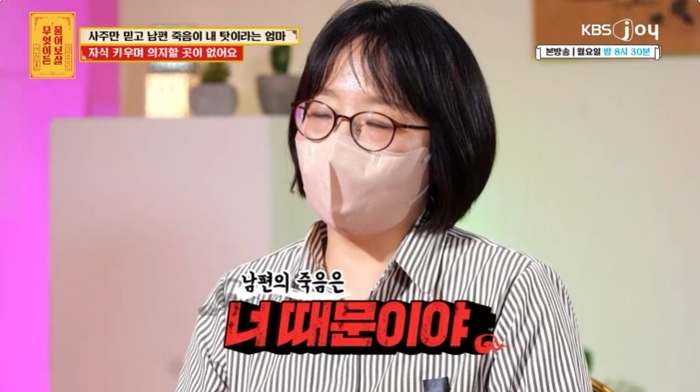 의뢰인은 “(남편이 죽은 지) 9년이 됐다”며 “남편이 있을 때 어머니와의 사이는 어땠어?”라는 질문에 “자주보는 사이는 아니었다. (결혼 전에는) 엄마하고 사이가 다정한 사이가 아니어서 평상시에도 말을 좋게 하는 편은 아니다. 장례식장에서도 엄마는 처음부터 사주 이야기만 했다. 저 때문인 것 같다는 표현을 많이 하셨다”고 털어놨다.