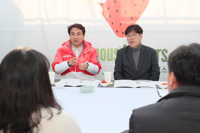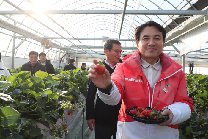 전국 | 강원 [포토]김진태 강원특별자치도지사, 강릉 딸기 농장 ‘페이머스 파머스’ 방문 입력2024-01-30 11:05:57 북마크 페이스북 트위터 SNS 더보기 가글자크기설정 인쇄 SNS 더보기 닫기 네이버밴드 네이버블로그 URL복사 글자크기 설정 메뉴 닫기 글자크기 설정 시 다른 기사의 본문도동일하게 적용됩니다. 가 가 가 가 가 [스포츠서울ㅣ김기원기자] 김진태 강원특별자치도지사는 1월 30일, 강릉시 연곡면 일대에 위치한 강릉 딸기 농장 ‘페이머스 파머스’를 방문했다.acdcok4021@sportsseoul.com 기사추천 0