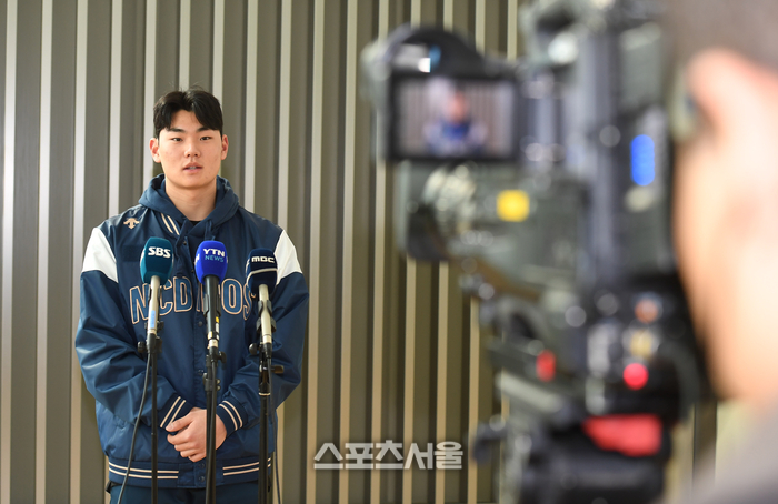 NC 다이노스 김주원이 30일 인천국제공항에서 스프링캠프를 위해 미국 애리조나로 출국하기에 앞서 취재진과 인터뷰를 하고 있다. 2024. 1. 30. 인천국제공항 | 박진업 기자 upandup@sportsseoul.com