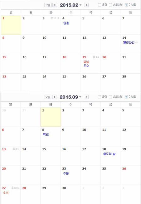 2015년 공휴일