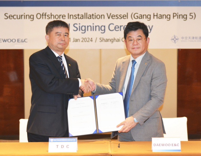 대우건설은 지난달 31일 중국국영기업 CCCC Tianjin Dredging China와 중국 상하이 푸동에서 해상풍력 주기기 설치 전용선박(WTIV) “강항핑 5호”의 국내독점사용 업무협약을 체결했다.