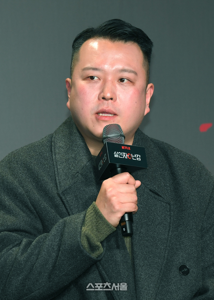이창희 감독이 1일 서울 용산구 몬드리안호텔에서 진행된 넷플릭스 시리즈 ‘살인자ㅇ난감’ 제작발표회에서 취재진의 질문에 답을 하고 있다. ‘살인자ㅇ난감’은 우연히 살인을 시작하게 된 평범한 남자와 그를 지독하게 쫓는 형사의 이야기를 그린 넷플릭스 시리즈로 배우 최우식, 손석구, 이희준 등이 출연하며 이창희 감독이 연출을 맡았다. 2024. 2. 1. 박진업 기자 upandup@sportsseoul.com