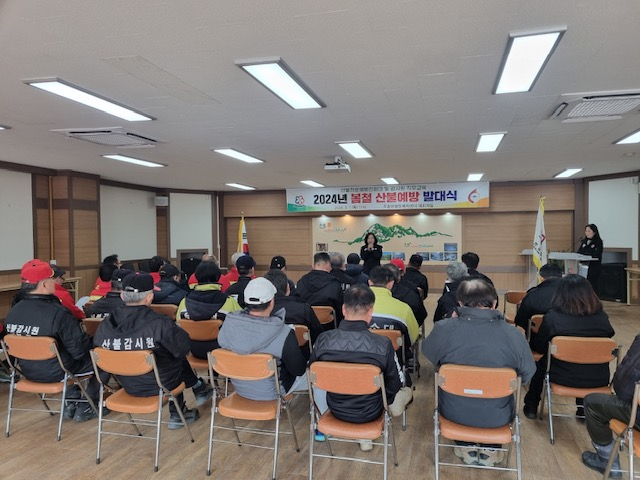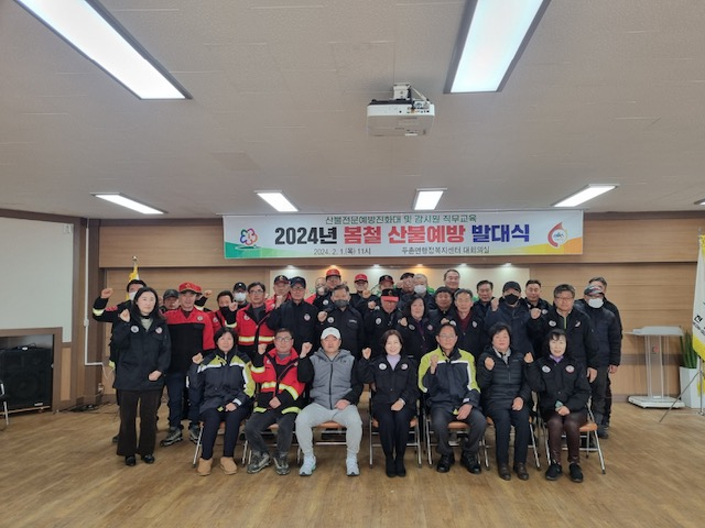 이날 발대식에는 두촌면산불감시원, 두촌면산불전문예방진화대원, 산불지원단체, 공무원 등 50여 명이 참석하여 산불예방 관련 직무교육이 진행됐다.