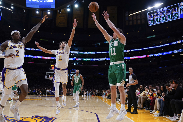 레이커스는 파워포워드 앤서니 데이비스(AD)가 시즌 최다 40득점에도 졌다. 르브론 제임스가 16점에 그쳤다. 반면 셀틱스는 오프시즌 이적한 센터 크리스탭스 포징기스의 28점을 비롯해 6명이 두 자릿수 득점으로 원정 대승을 올렸다.