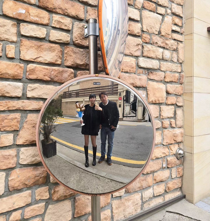 첫 번째 사진 속 이수근 부부는 아들의 졸업식에 함께 나서는 듯 보였으나 다음 사진에서는 이수근 혼자 축하 풍선을 들고 인증사진을 남기고 있다.