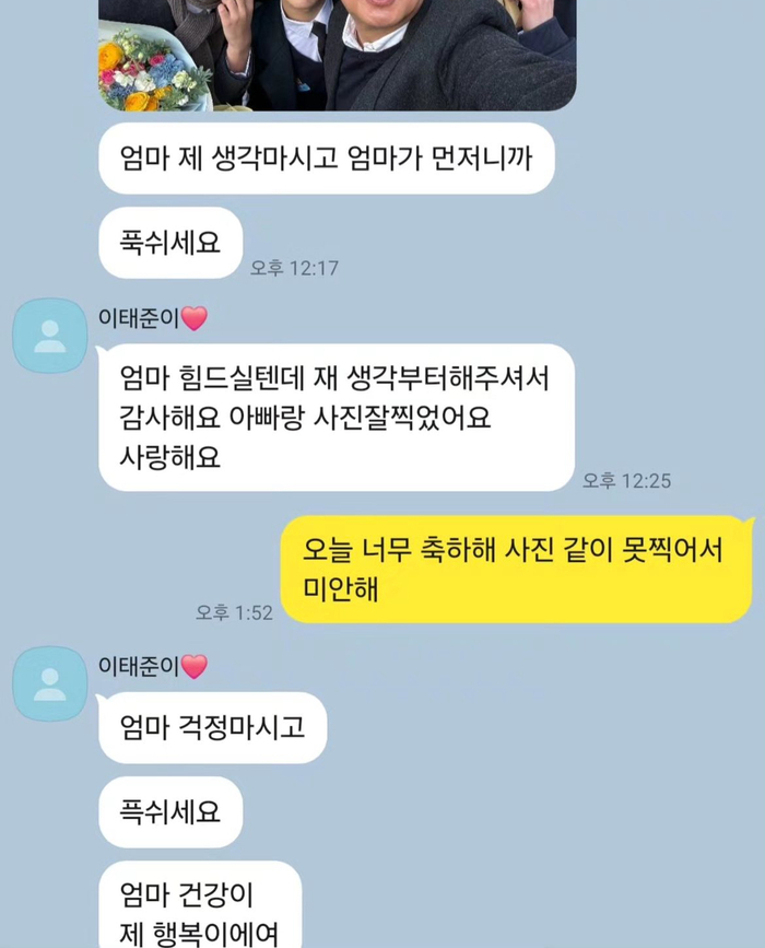 특히 마지막 사진에는 아들과 나눈 메시지가 담겨있어 눈길을 끈다.