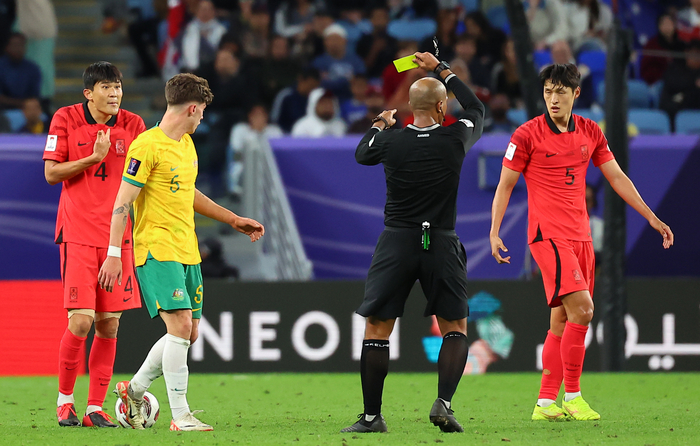 축구대표팀 수비수 김민재(28·바이에른 뮌헨)은 지난 3일(한국시간) 카타르 도하 알 자누브 스타디움에서 열린 호주와 아시아축구연맹(AFC) 아시안컵 8강전에서 후반 추가시간 옐로카드를 받았다. 공을 두고 상대와 경합하는 과정에서 주심은 김민재가 거친 행동을 했다고 판단해 카드를 꺼냈다.