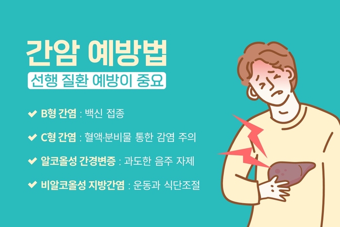 간암을 예방하려면 무엇보다 B·C형 간염을 피해야 한다. 우리나라 간암 환자 중 약 75% 정도는 B형 간염이, 10% 정도는 C형 간염이 원인이다. B형 간염은 백신 접종으로 예방이 가능하지만 C형 간염은 백신이 없기 때문에 특히 주의해야 한다. 특히 C형 간염은 혈액이나 분비물을 통해 감염되는 만큼 손톱깎이나 면도기, 칫솔, 주사기 등의 공동 사용을 피해야 한다. 또 소독하지 않은 침이나 뜸, 문신 등도 감염 위험을 높일 수 있어 주의해야 한다.