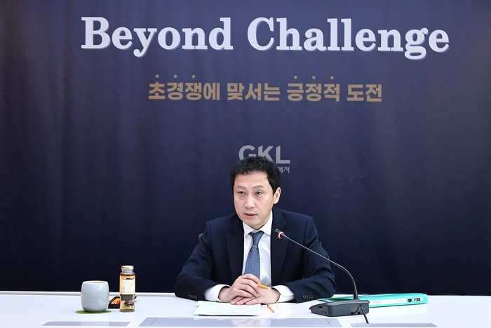그랜드코리아레저(GKL) 김영산 사장이 5일, 서울 강남구 삼성동 본사 회의실에서 새해 첫 경영전략회의를 열고 올해 경영슬로건 ‘리본 2024, 비욘드 챌린지’를 발표했다.