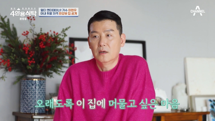 이현우는 한강뷰 하우스를 공개했다. 채광이 좋은 넓은 거실과 깔끔하고 고급스러운 인테리어, 아내의 취향이 느껴지는 꽃과 장식품 등이 눈길을 끌었다.