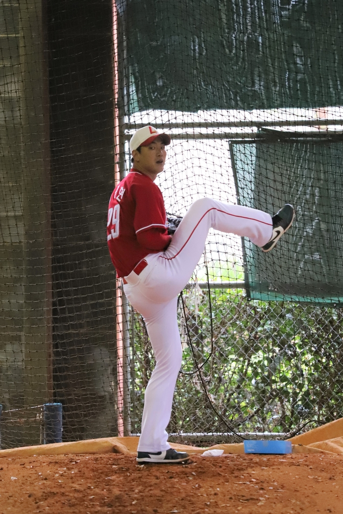 김광현은 이날 불펜피칭을 소화했다. 캠프 두 번째 피칭. 40개를 뿌렸다. 속구와 변화구를 골고루 소화했다. 보는 선수들이 ‘와~’ 하는 감탄을 쏟아낼 정도로 좋은 공을 던졌다.