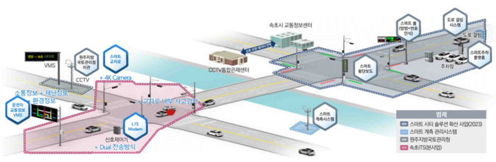 이번 사업에서는 ▴최적의 경로서비스를 제공하는 스마트 교차로 7개소 ▴속초전역 신호제어 정책을 위한 온라인무선신호기 118개소 ▴교통정체와 우회경로 정보를 제공하는 도로전광판 VMS 2개소 ▴교통정보를 수집, 연계, 가공 및 제공하는 스마트 교통정보센터 1식을 구축할 계획이며, 도시방범시스템, 경찰청 민간정보, 스마트계측관리시스템, 스마트시티솔루션사업 등과 연계하여 교통정보를 고도화할 방침이다.