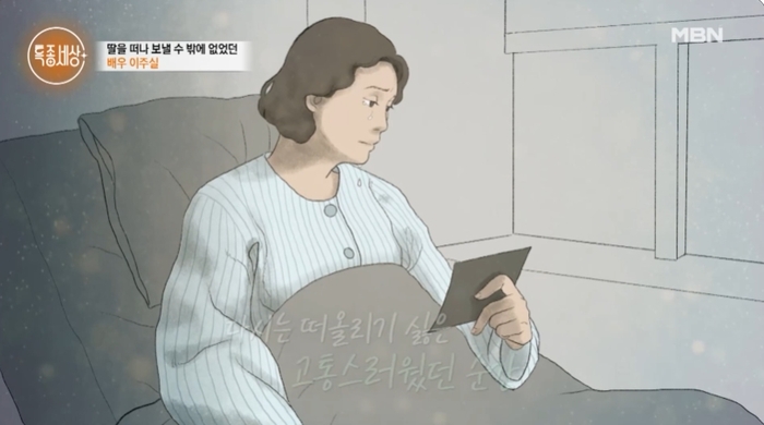 이주실은 “희망의 끈이라도 보인다면 내가 노력해서 건강을 회복할 수 있다면 어떻게 해서라도 해볼 텐데 시작부터 어렵다. 그러니까 아이들부터 어떻게 해봐야 되겠다 생각이 먼저였다. 캐나다에 있는 동생이 딸이 없다. 그러니까 저 애들을 그리 보내자. 어떤 것 하나를 선택하기 어렵지만 한 가지를 선택한 것이 그 길이다. 어쩔 수 없었다”며 홀로 투병 생활을 보냈던 시간을 기억했다.