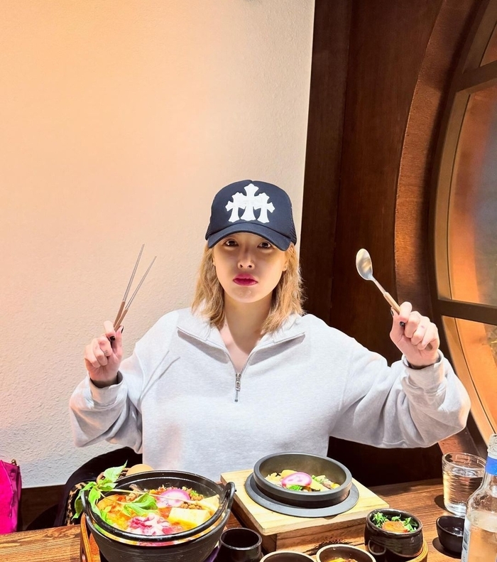 공개한 사진에서 현아는 솥밥 등 음식과 자기 모습을 담았다.