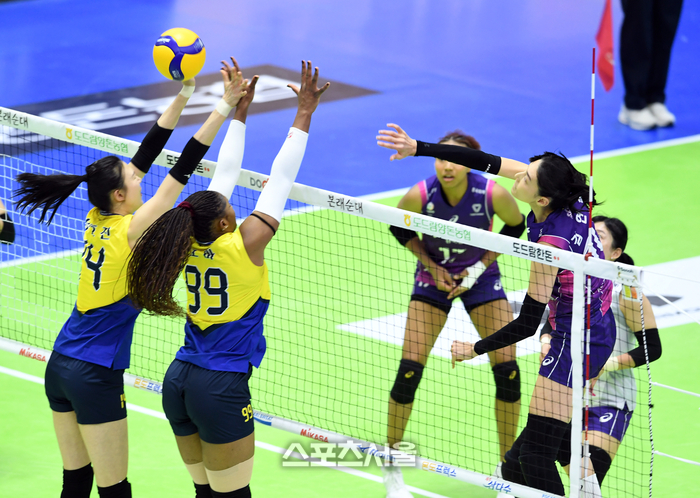 흥국생명 김연경이 12일 수원체육관에서 열린 2023-2024 V리그 여자부 현대건설과 경기에서 스파이크 공격을 하고 있다. 2024. 2. 12. 수원 | 박진업 기자 upandup@sportsseoul.com