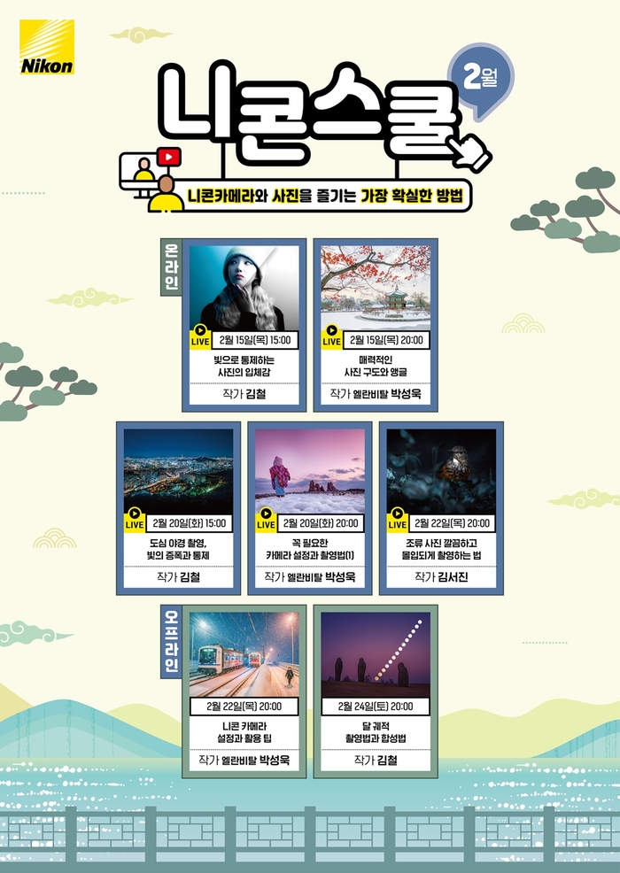 온라인 니콘스쿨 수강을 원하는 고객은 누구나 해당 강의 시간에 니콘 공식 유튜브 채널에 접속하면 된다. 오프라인 강의는 별도 신청 후 수강이 가능하다.