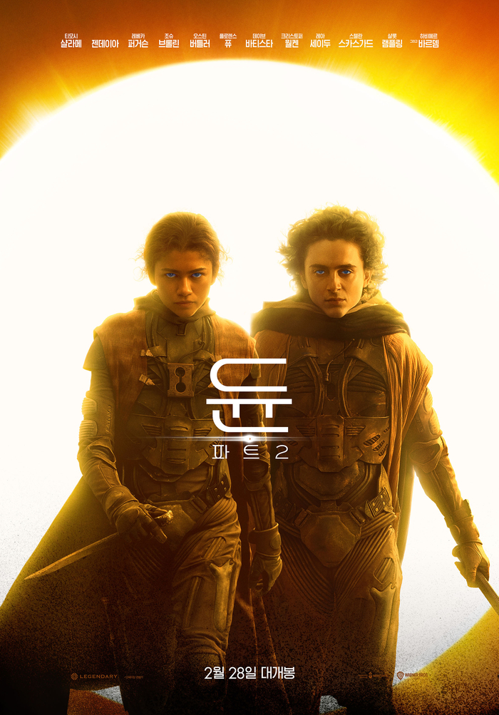 ‘듄: 파트2’는 예매 오픈과 동시에 개봉을 2주 이상 앞두고 있는 상황에서도 7만 장을 훌쩍 뛰어넘는 사전 예매량을 기록하며 명실공히 2월 극장가 최고 기대작으로 꼽힌다. 그런 가운데 듀오 포스터를 공개돼 영화를 기다리는 예비 관객들에게 설렘을 선사한다.