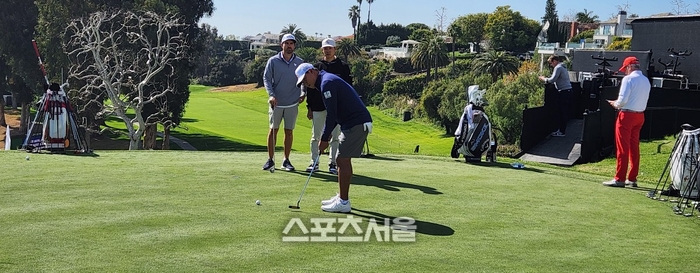리비에라 CC(파 71/7322야드)는 지난해 메이저 대회 US오픈을 개최한 LA CC, 벨에어 CC 등과 LA의 3대 명문 코스로 통한다. 워터 해저드가 없고 그린이 까다롭기로 유명하다. 프로 선수들이 가장 어려운 그린으로 꼽는 게 ‘포아우나(Poa annua)’다. 리비에라 CC가 포아우나다. 김시우와 김주형은 그린에서 많은 시간을 할애했다. 임성재는 샷을 가다듬었다.