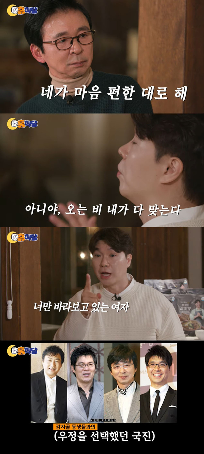 박수홍은 “예전에 SM엔터테인먼트 이수만 대표가 국진이형한테 오라고 했는데, 형이 결국 안 갔다”라며 감자골 동생들(김수용, 김용만, 박수홍)을 위해 큰돈을 벌 수 있는 선택을 포기한 일화를 꺼냈다.