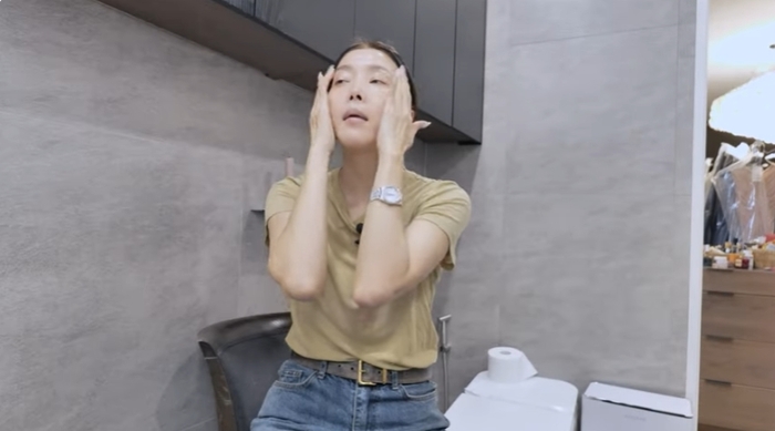 먼저 거품 클렌징을 한 뒤 미스트로 스킨케어를 시작했다. 이어 화이트닝 제품을 꺼내 바르며 “비타민C 세럼을 바르면 따갑다 이러시는 분도 계시는데 저는 그 따가움을 좋아한다. 왜냐하면 뭔가 케어가 되는 느낌이라. 피부가 뭔가 탱탱해지는 느낌, 쫀쫀한 느낌이 들어서 너무 좋은 거다. 화이트닝을 많이 쓴다. 잡티가 있어서 이런 걸로 케어를 하는 느낌을 바로바로 볼 수 있다”고 말했다.