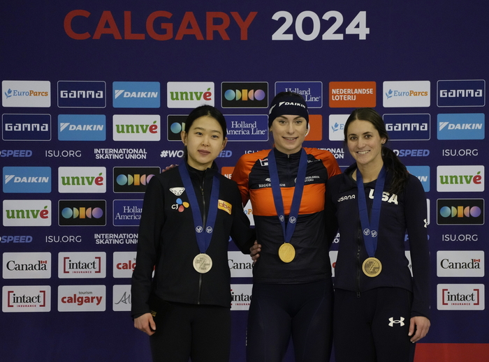 17일 오전(한국시간) 캐나다 캘거리 올림픽 오벌에서 열린 2024 국제빙상경기연맹(ISU) 스피드스케이팅 종목별 세계선수권대회(World Single Distances Championships) 여자 500m 경기.