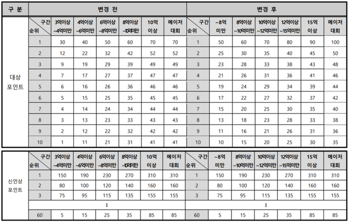 우승자와 준우승자간 배점을 두 배로 고정해, 우승자의 확실한 이익을 보장한 점도 달라진 부분이다.
