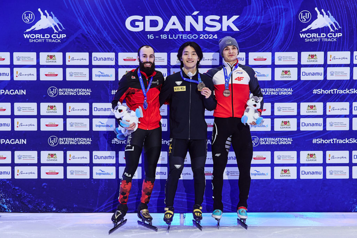 18일 오전(한국시간) 폴란드 그단스크에서 열린 2023~2024 국제빙상경기연맹(ISU) 쇼트트랙 월드컵 6차 대회 남자 500m 파이널A 1차 레이스.