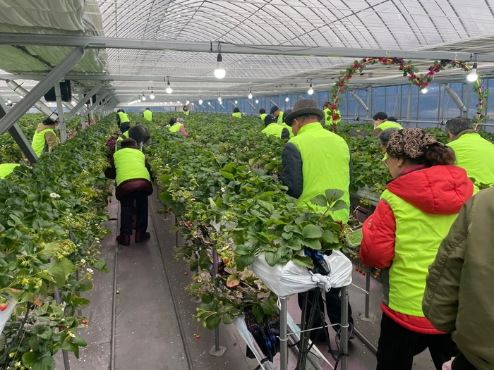 [스포츠서울ㅣ원주=김기원기자] 원주시 치매안심센터는 지난 15일 치매환자와 가족의 정서 함양과 건강을 위한 야외치유 프로그램의 일환으로 신림면에 있는 딸기농장에서 체험행사를 진행했다