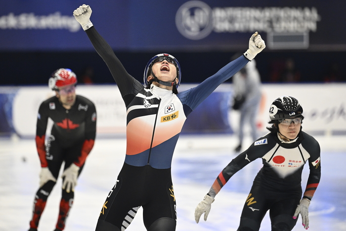 19일 오전(한국시간) 폴란드 그단스크에서 계속된 2023~2024 국제빙상경기연맹(ISU) 쇼트트랙 월드컵 최종 6차 대회 마지막날 여자 1000m 파이널A.