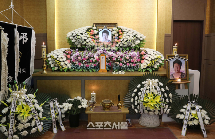 연예 | 가요(음악) [포토]오랜 투병 끝에 세상 떠난 방실이 입력2024-02-20 19:05:12 북마크 페이스북 트위터 SNS 더보기 가글자크기설정 인쇄 SNS 더보기 닫기 네이버밴드 네이버블로그 URL복사 글자크기 설정 메뉴 닫기 글자크기 설정 시 다른 기사의 본문도동일하게 적용됩니다. 가 가 가 가 가 가수 방실이(본명 방영순)의 빈소가 20일 오후 인천 강화군 참사랑장례식장에 마련됐다. 2007년 갑작스런 뇌경색으로 쓰러진 방실이는 17년 투병 끝에 세상을 등졌다. 2024. 2. 20. 사진=사진공동취재단 기사추천 0