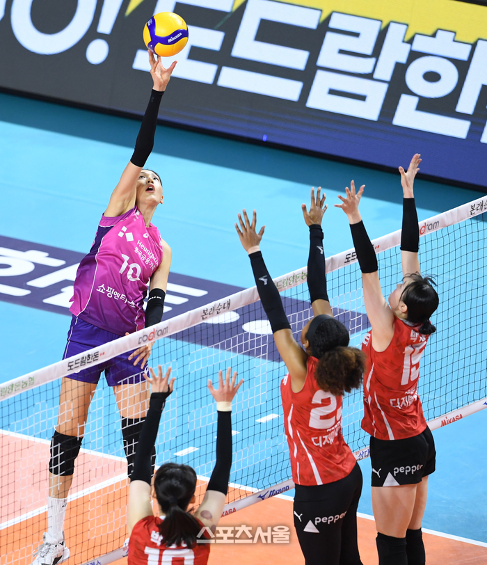 흥국생명 김연경(왼쪽)이 20일 인천 삼산월드체육관에서 열린 2023-2024 V리그 여자부 페퍼저축은행과 경기에서 상대 블로커를 피해 공을 넘기고 있다. 2024. 2. 20. 삼산 | 박진업 기자 upandup@sportsseoul.com