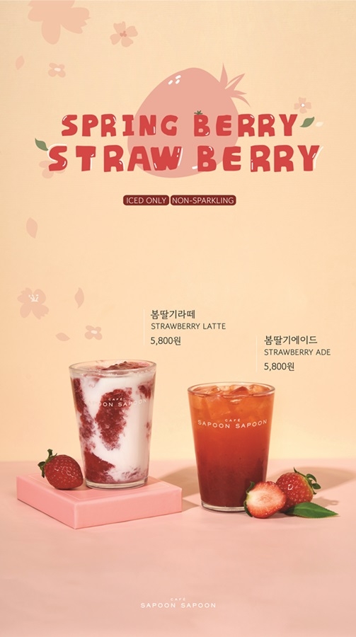 [스포츠서울 | 최규리 기자] KGC인삼공사의 건강 라이프스타일 카페 ‘정관장 사푼사푼(SAPOON SAPOON)’에서 봄 시즌을 맞아 5월 15일까지 ‘봄딸기 라떼’, ‘봄딸기 에이드’ 시즌 음료 2종을 출시했다고 밝혔다.