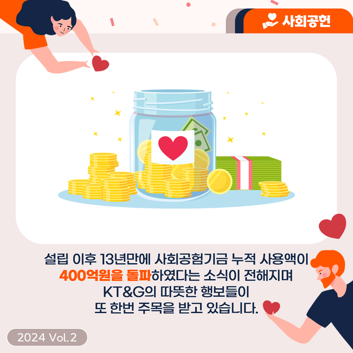 경제 | 사회 KT&G 상상펀드, 사회공헌기금 누적 400억원 돌파 입력2024-02-22 10:52:36 북마크 페이스북 트위터 SNS 더보기 가글자크기설정 인쇄 SNS 더보기 닫기 네이버밴드 네이버블로그 URL복사 글자크기 설정 메뉴 닫기 글자크기 설정 시 다른 기사의 본문도동일하게 적용됩니다. 가 가 가 가 가 [스포츠서울 | 신재유 기자]wayjay@sportsseoul.com 기사추천 0